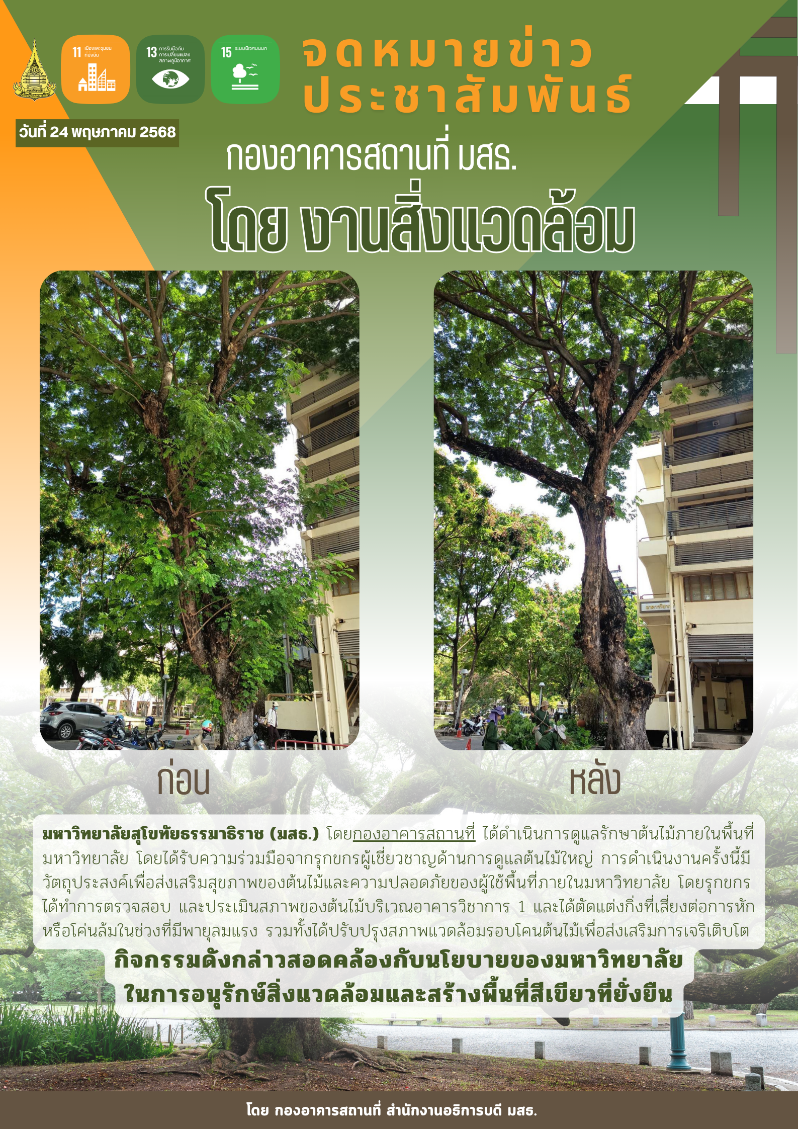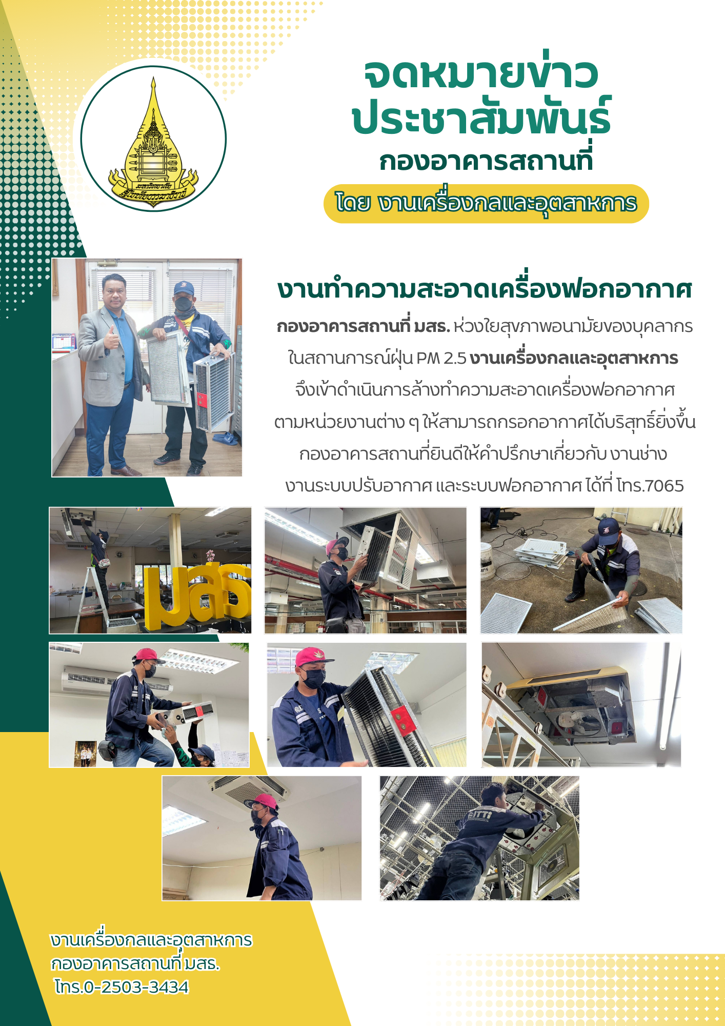 Homeข่าวเผยแพร่ทั่วไป ข่าวเผยแพร่ทั่วไป พื้นที่เสี่ยงดินถล่ม ดินถล่ม (414 downloads ) กองอาคารสถานที่ดำเนินการ ปรับปรุงภูมิทัศนะ รุกขกร (389 downloads ) มสธ ร่วมกับ กรมโยธาฯตรวจสอบอาคาร หลังเหตุแผ่นดินไหว ดาวน์โหลดเอกสาร (380 downloads ) กิจกรรม On Tour เข้าชมอาคารห้องสมุดและศูนย์การเรียนรู้วันที่ 21-22 เมษายน 2568 ดาวน์โหลดเอกสาร (440 downloads ) เป้าหมายการพัฒนาที่ยั่งยืน โดย กองอาคารสถานที่ Kamikatsu Model ถอดความสำเร็จ ของเมืองเล็กกลางหุบเขา ดาวน์โหลดเอกสาร (346 downloads ) ผลการประเมินความพึงพอใจของการพัฒนา ปรับปรุงบำรุงรักษาภูมิทัศน์ และอาคารสถานที่ให้เอื้อต่อการทำงานและการเรียนรู้ ประจำปีงบประมาณ พ.ศ. 2567 ดาวน์โหลดเอกสาร (406 downloads ) งานสิ่งแวดล้อมดำเนินแผนกำจัดปลวกและหนู ดาวน์โหลดเอกสาร (440 downloads ) งานเครื่องกล ดำเนินการปรับปรุงเครื่องปรับอากาศ พร้อมรับ PM 2.5 ดาวน์โหลดเอกสาร (369 downloads )